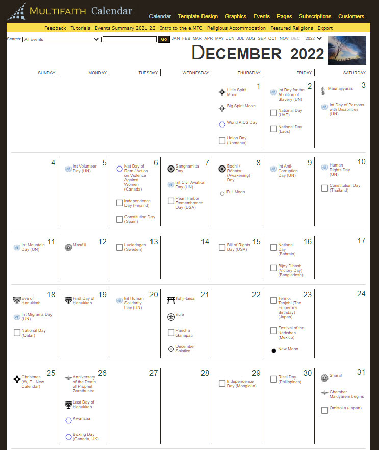 » Integrated search function lets you find specific events quickly and easily. » Show or hide any of the categories (i.e. faith, astronomical, UN, etc.) in the Calendar... it's your choice!